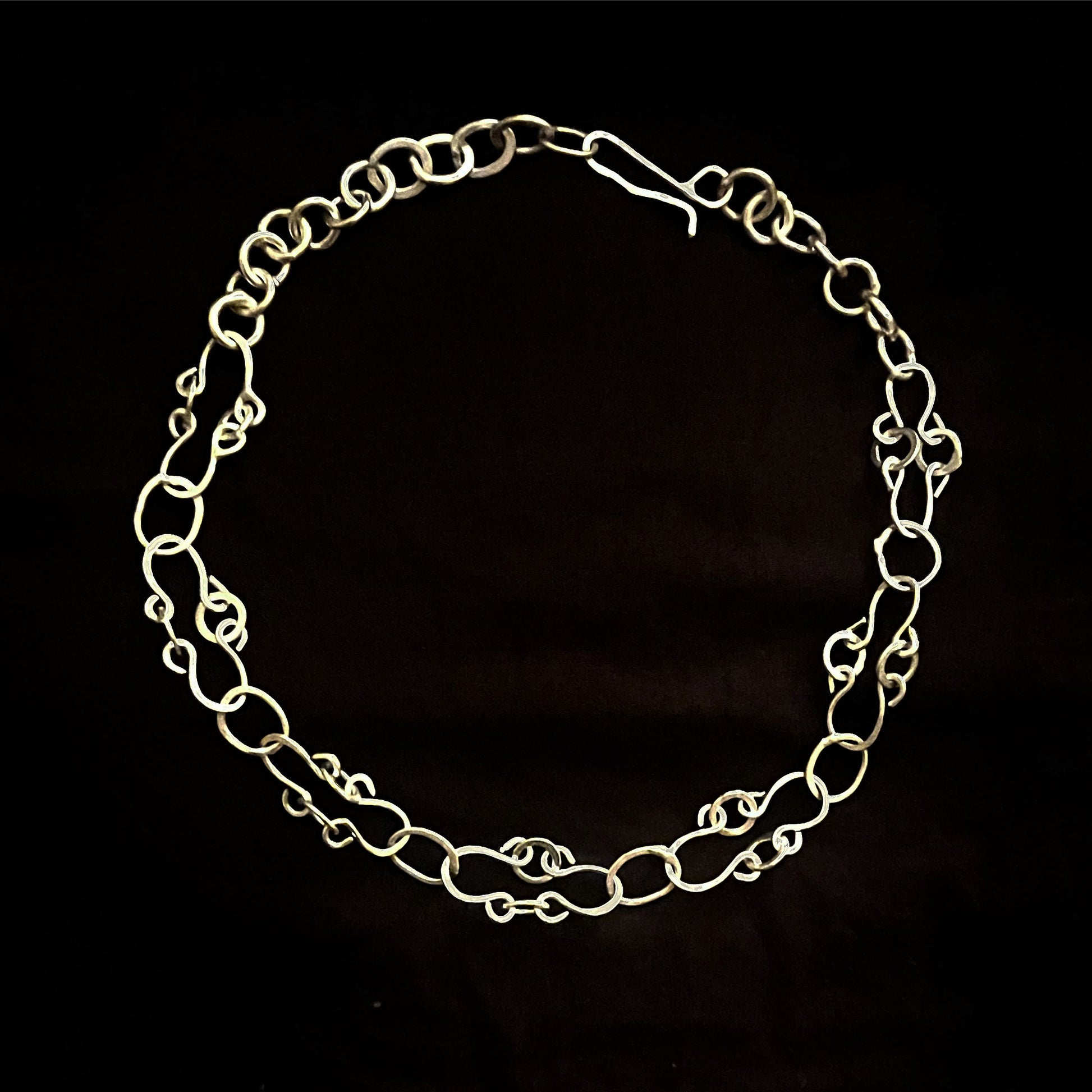 Pulling inspiration from the iron gates of olde, this collar is handmade and is 100% sterling silver.